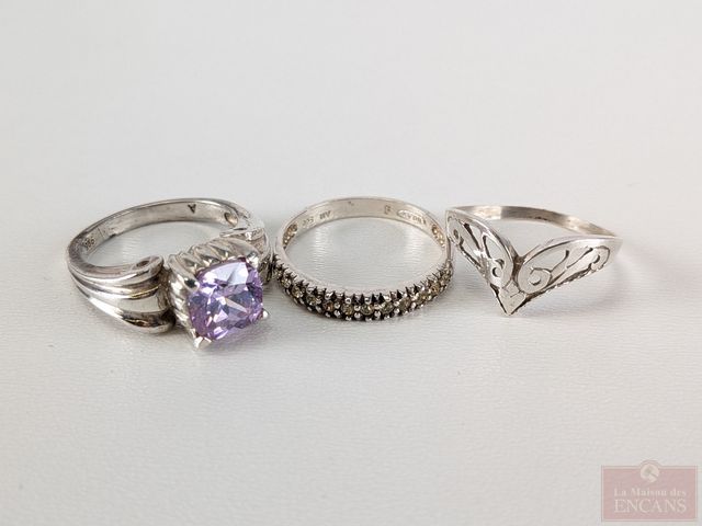 Lot # 72 - Trois bagues en argent de taille 7.25, 8 et 8.5
