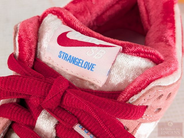 Paire de chaussures Nike Strangelove SB Dunk Low Pro QS couleur melon clair rouge gym, neuve, dans sa boite d'origine