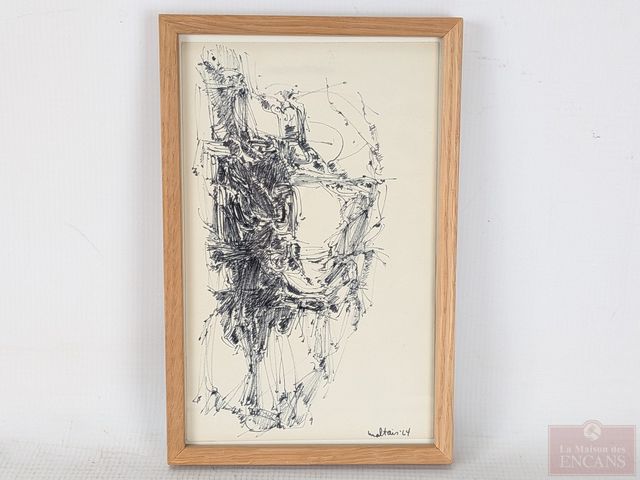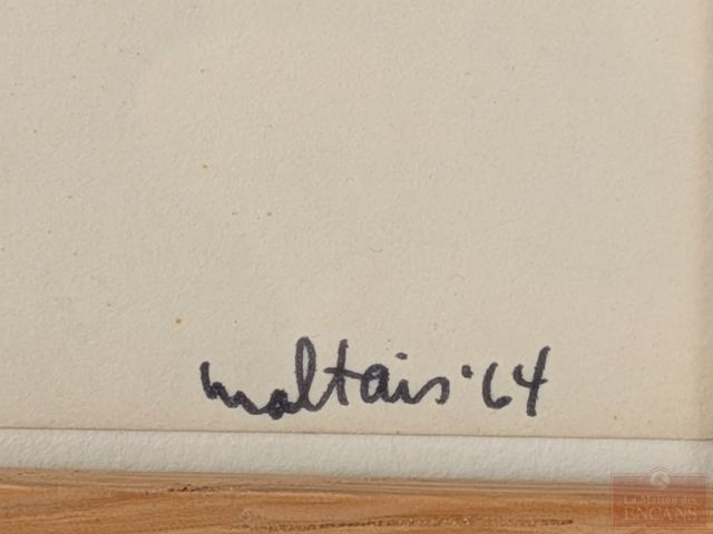 Lot # 110 - Marcella MALTAIS- Dessin à l'encre sur papier, signé et mesurant 8x5 pouces