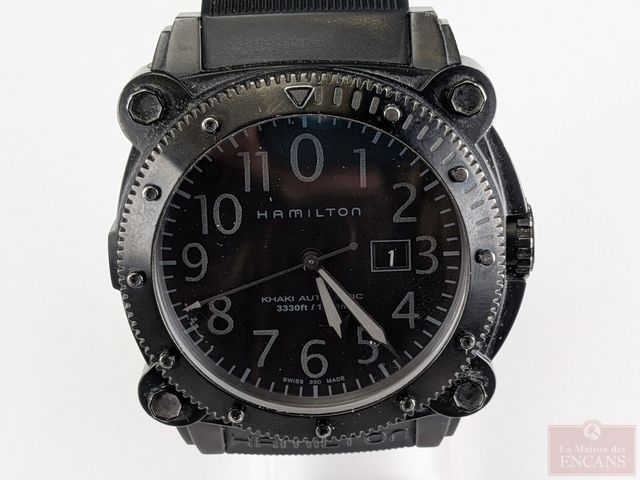 Lot # 103 - Montre Hamilton ref. H785850, édition limitée, modèle Khaki Below Zero en acier inoxydable, cadran unidirectionnel avec date, mouvement automatique mesurant 50.4 millimètres avec sa couronne signée et vissée, fonctionnelle