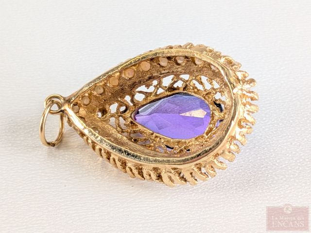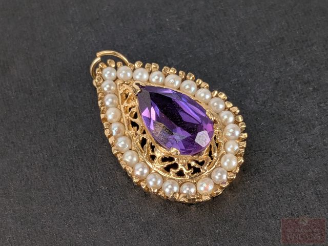 Lot # 119 - Pendentif en or 14k serti d'une pierre et de perles, mesurant 1 pouce de hauteur