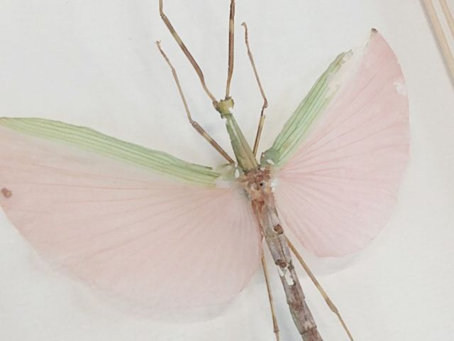Lot # 12 - Cadre d'insecte naturalisé - Marmessoidea rosea - de Malaisie - 11x11 pouces  VENDU