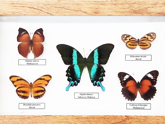Lot # 11 - Cadre de papillons naturalisé - Brésil - Malaisie - Madagascar - 11x16 pouces SOLD