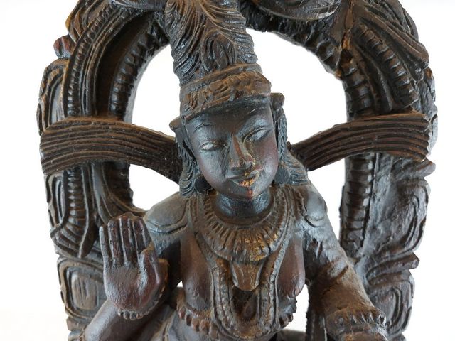 Sculpture sur bois représentant une divinité de l'Asie du Sud Est - mesurant 24 pouces de hauteur
