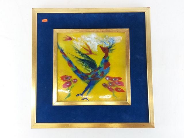 Lot # 93 - RENGAR - Émail sur cuivre signé et mesurant 10.5x10.5 pouces VENDU