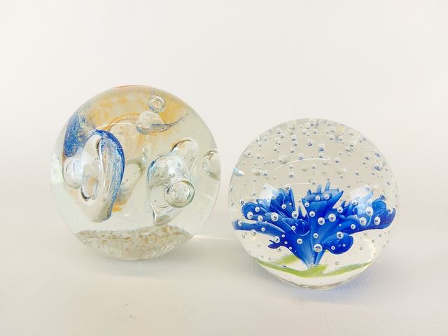 Lot varié comprenant deux presse-papiers en verre de Murano - des œufs sculptés sur pierre - porcelaines - et autres
