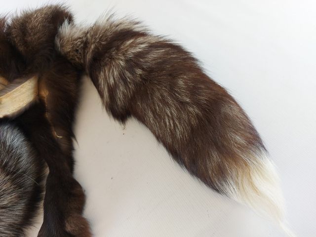 Lot # 166 - Étole en fourrure de renard argenté véritable mesurant 50 pouces  VENDU
