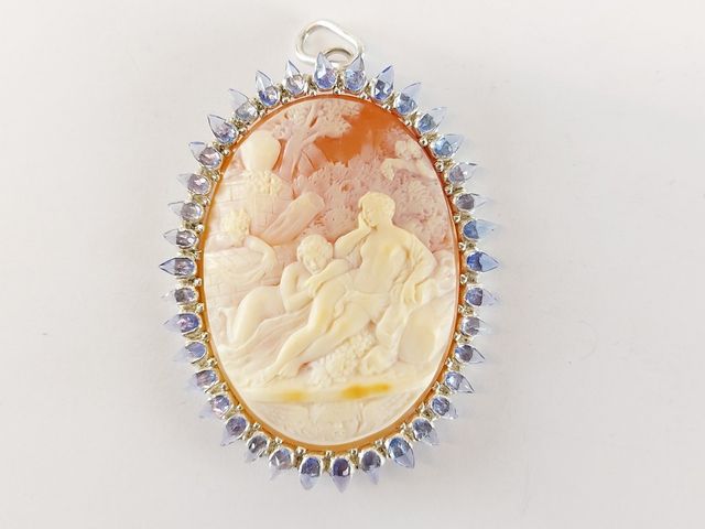 Lot # 147 - Superbe camée finement sculpté à la main et monté sur argent sertie de multiples tanzanites goutte - mesurant 2.4 pouces   VENDU
