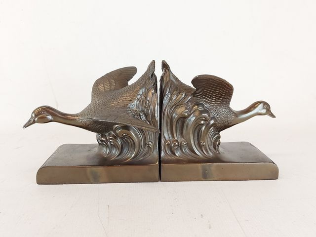 Paire d'appuis-livres signés B-P et représentant des oies - mesurant 5x5 pouces