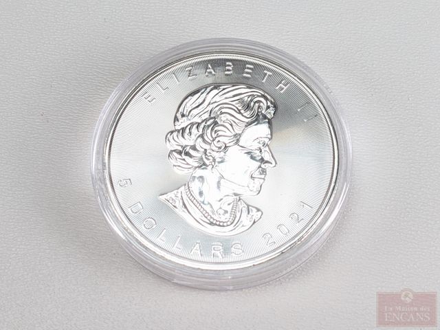 Lot # 195 - Pièce canadienne d'une once d'argent pur 9999 cinq dollars 2021, encapsulée, sans taxes SOLD