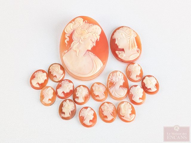 Lot de camés finement sculptés, le plus grand mesurant 1.5 pouces de hauteur