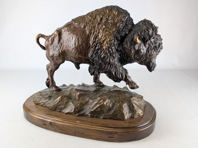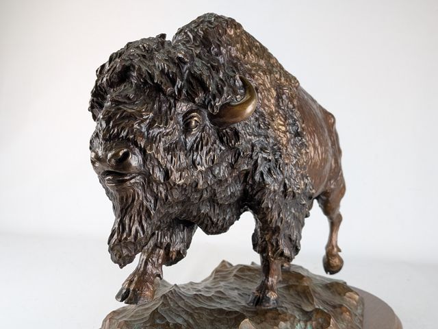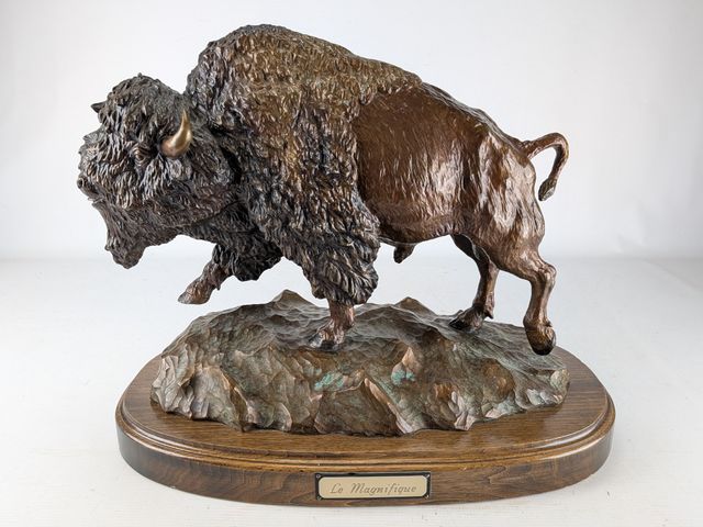 Denis DOUILLE- Superbe bronze signé, représentant un bison, mesurant 16 pouces de largeur et titré Le magnifique, avec certificat d'évaluation à 10 000$