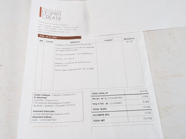 15% de frais d'encan + TPS/TVQ