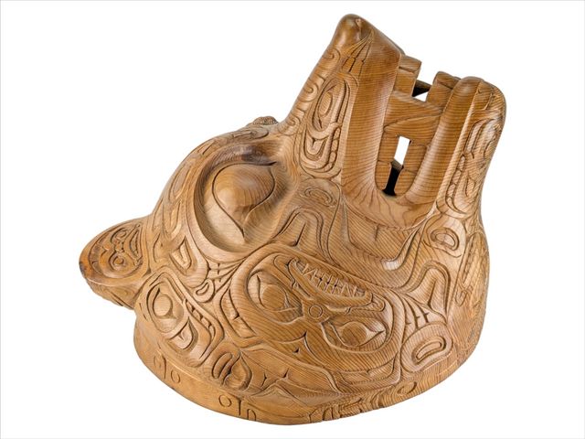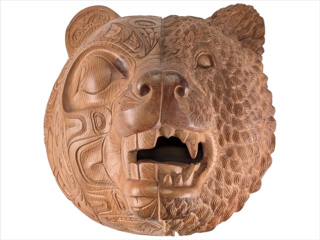Lot # 135 - Paul JOHNNY - Tête d’ours finement sculptée sur cèdre, signée avec sceau de l'artiste - mesurant 20 pouces de hauteur
