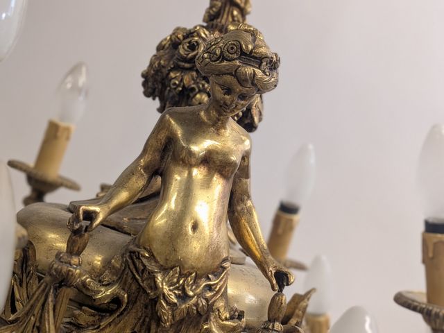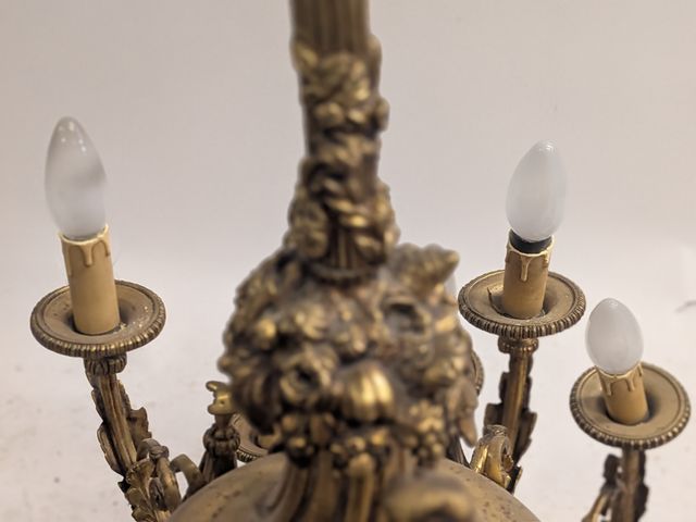 Lot # 157 - Superbe lustre en bronze à motifs floraux et de femmes mesurant 32 pouces de hauteur