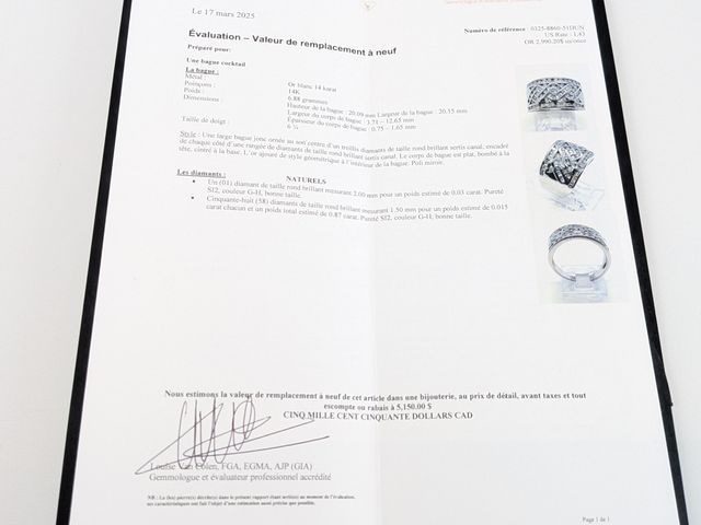 Lot # 102 - Bague en or blanc 14k - sertie de diamants totalisant 0,90 carat - Taille 6,25 avec certificat d'évaluation de 5 150$