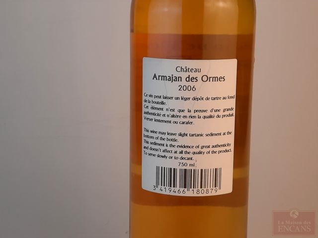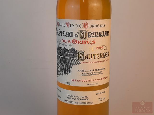 Lot # 11 - Château d’Armajan des Ormes 2006 – Appellation Sauternes Contrôlée – France – 14% - 750ml - un frais spécial versé à la SAQ de 10% +TPS/TVQ doit être ajouté au montant de vente