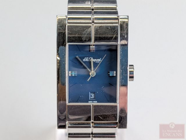 Lot # 28 - Montre de luxe S.T. Dupont au quartz – boitier carré mesurant 27mm avec sa couronne – Fonctionnelle