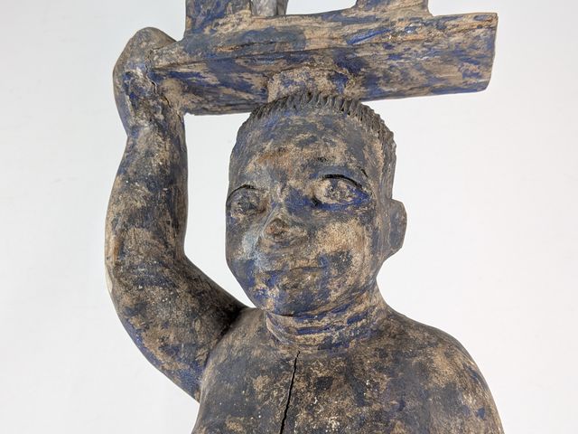 Lot # 124 - Ancienne sculpture sur bois provenant du Togo avec traces de peintures – mesurant 23 pouces de hauteur