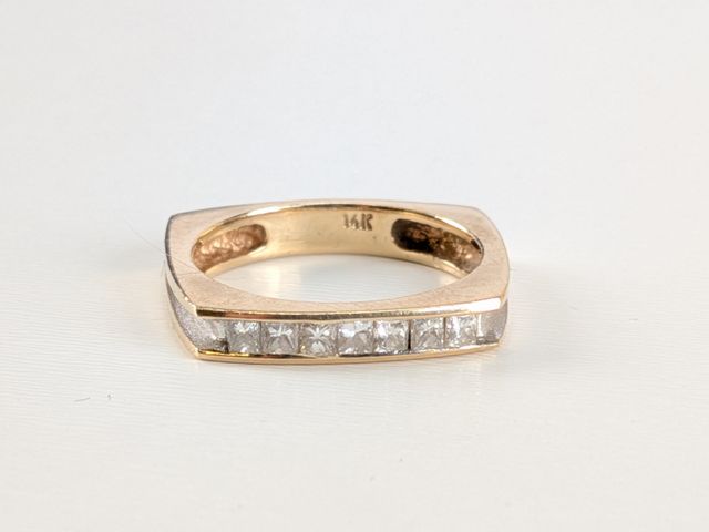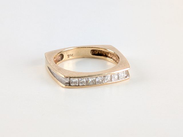 Lot # 136 - Bague en or 14k sertie de 7 diamants taillé princesse et qualité VS totalisant 0.35 carats – taille 7,25