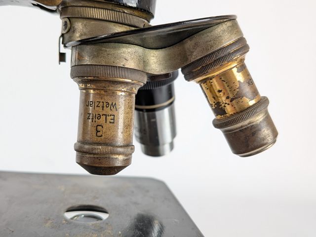 Lot # 159 - Ancien Microscope Carl Zeiss modèle 2168159 – fait en Allemagne – début 20e – 12 pouces de hauteur – dans son coffre d’origine avec accessoires