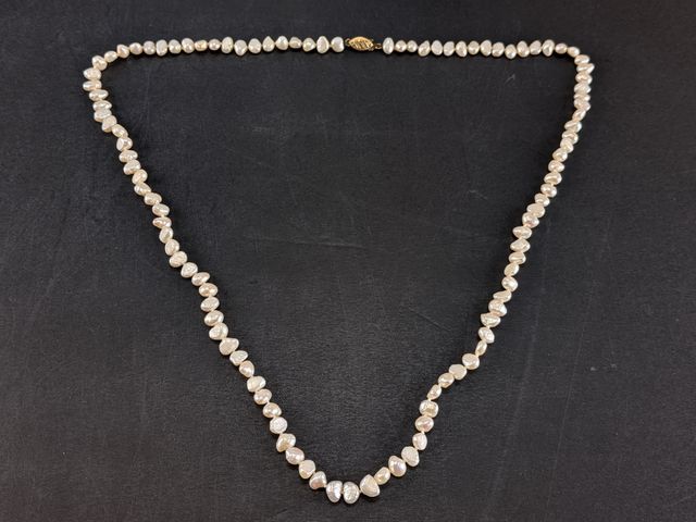 Lot # 121 - Collier de perles mesurant 27 pouces de longueur avec fermoir en or 14k
