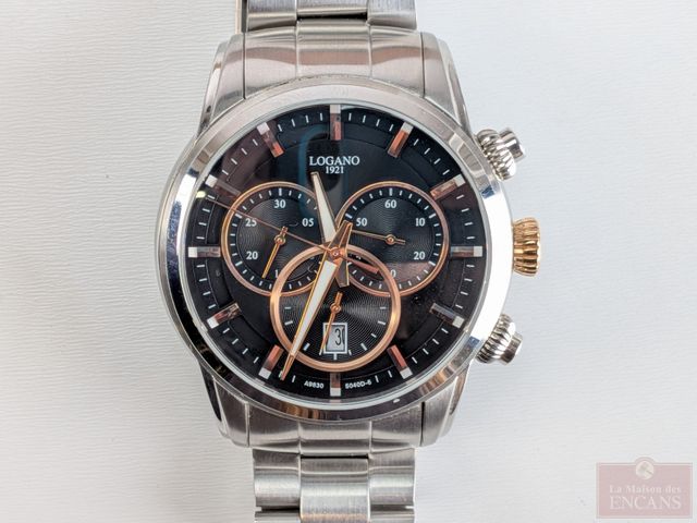Lot # 20 - Montre chronographe suisse Logano au quartz – Marque privée – 45mm avec la couronne signée – Autobloquante – Fonctionnelle