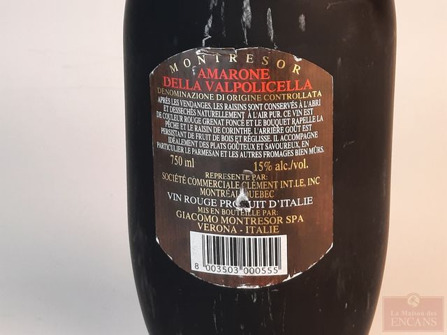 Lot # 13 - Amarone Montresor 2008 – Appellation d’origine Contrôlée – Italie – 15% - 750ml - un frais spécial versé à la SAQ de 10% +TPS/TVQ doit être ajouté au montant de vente