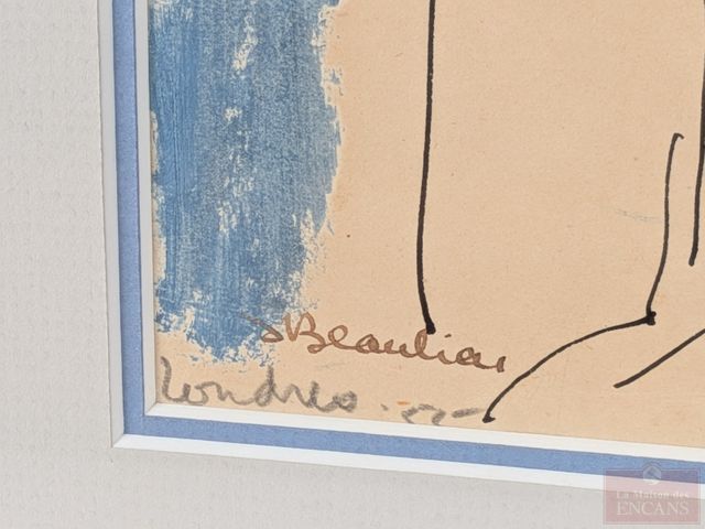 Lot # 23 - Paul Vanier BEAULIEU – Encre et gouache signée datée 1955 Londre – mesurant 14x9.75 pouces