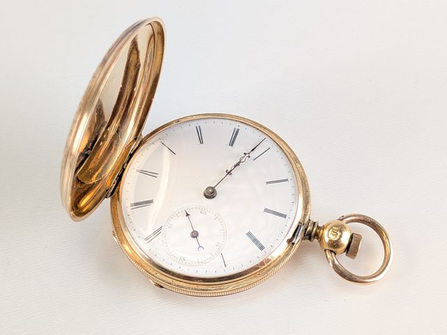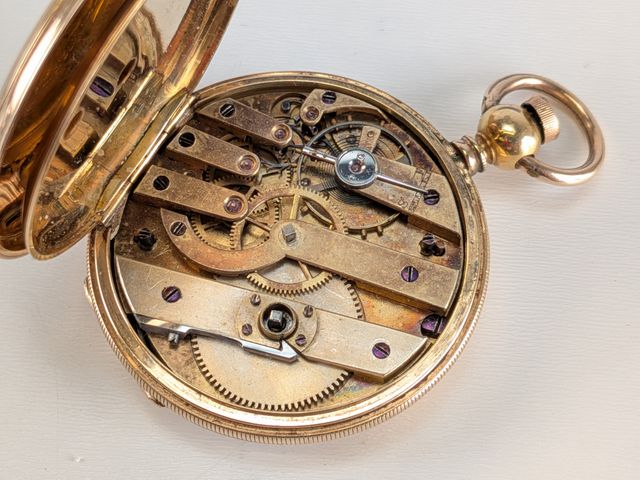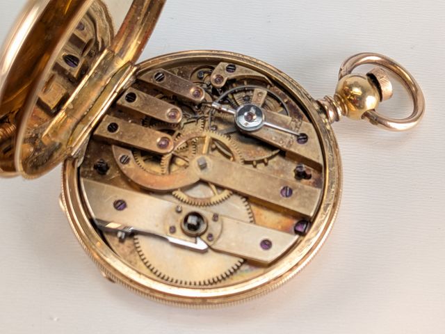 Lot # 192 - Montre de poche Hunting Case avec boîtier en or 18k – 23g – 57.7 grammes avec le mouvement