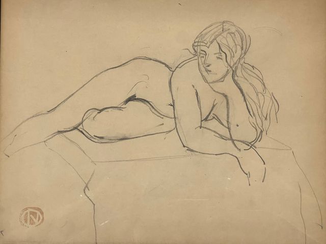 Henri HÉBERT – Esquisse au crayon sur papier mesurant 10x13 pouces avec seau de l'atelier de l'artiste et étiquette de galerie à l’endos