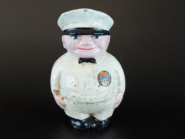 Lot # 182 - Banque vintage Gulf en métal - 5 pouces de hauteur SOLD