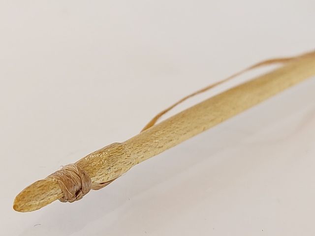 Lot # 168 - Artefact cérémonial de chaman esquimau représentant un harpon sculpté à la main dans du bois relié à du tendon de caribou servant à optimiser le rendement des chasseurs esquimaux - en excellente condition - 6 pouces de longueur CANCELLED